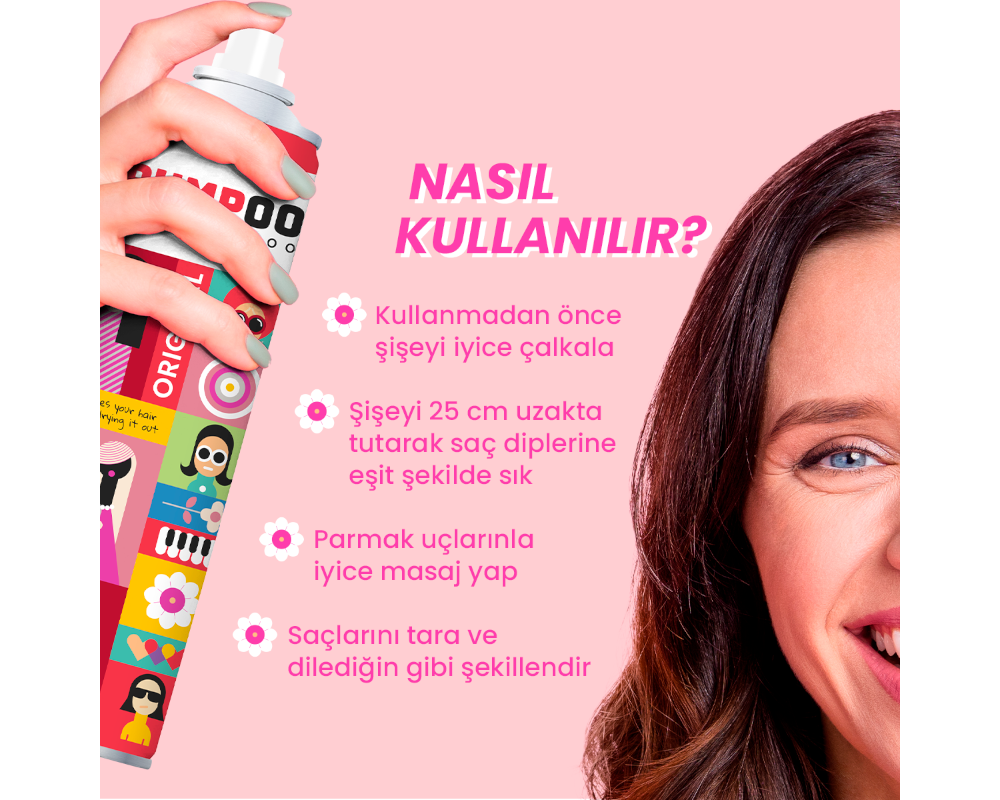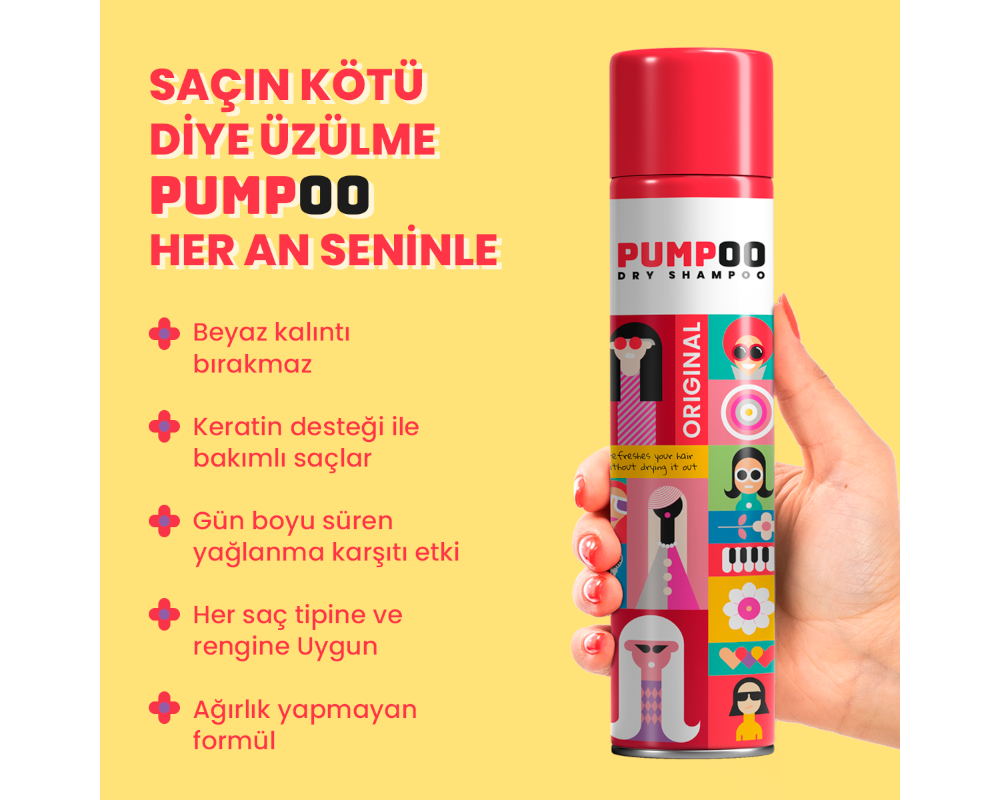 Pratik kullanımı sayesinde sadece bir dakika içerisinde yeni yıkanmış gibi görünen havalı ve hacimli saçlara kavuşmak Pumpoo ile çok kolay!